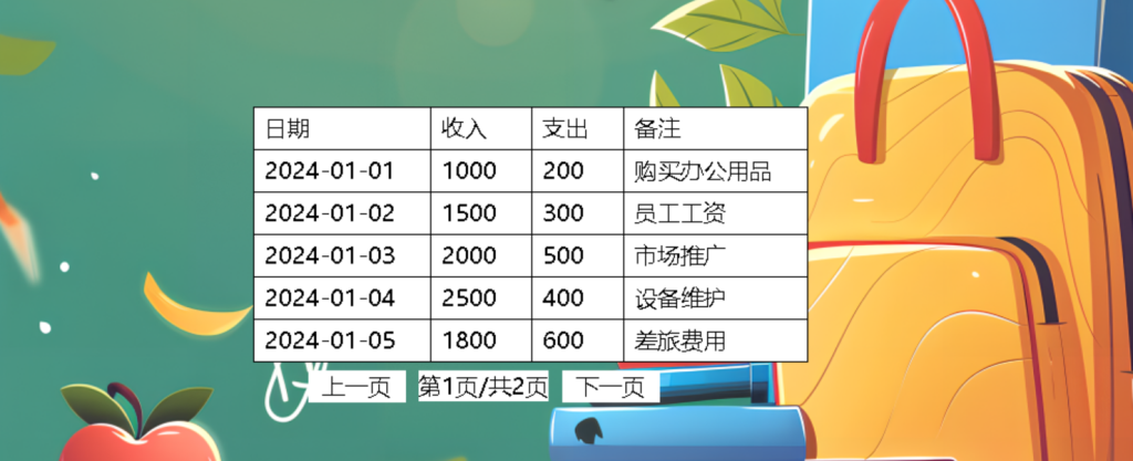 这是一个Table表格控件,它可以展示一些数据,将他们以表格的形式呈现,并且拥有丰富的API,可以自由调节背景透明,每页展示的数据条数,以及边框的颜色,字体等